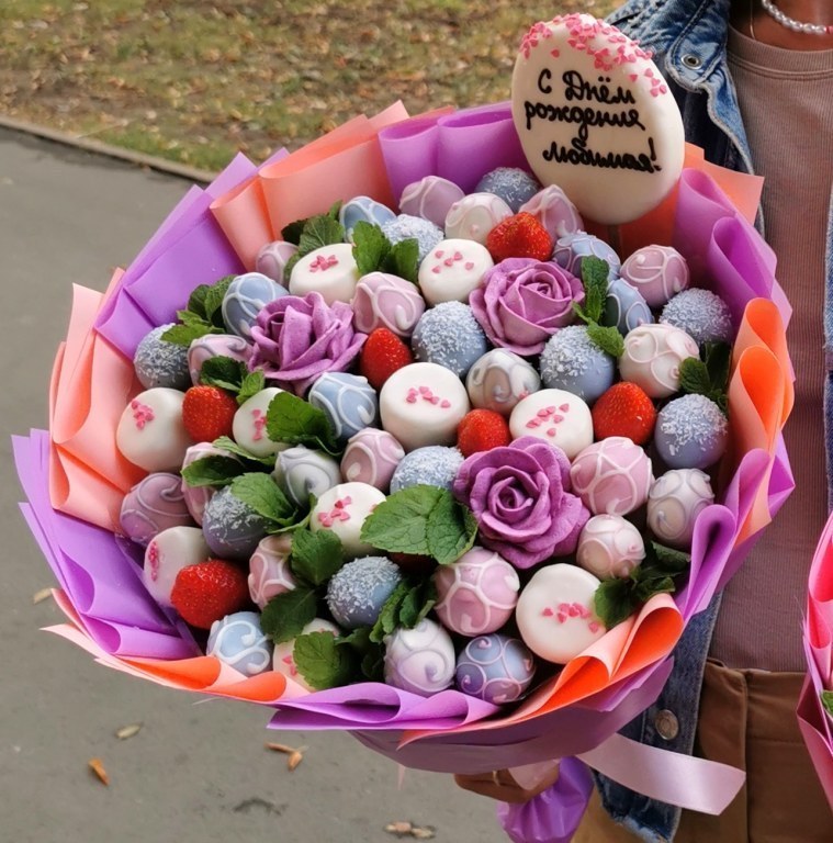 «Спасибо огромное за фруктовый букет!!!! Это шедевр!!! Вкусно, красиво, незабываемо. Спасибо, что вы есть????. "История любви", "любимой", что может быть лучше... Рекомендую всем!!!!»