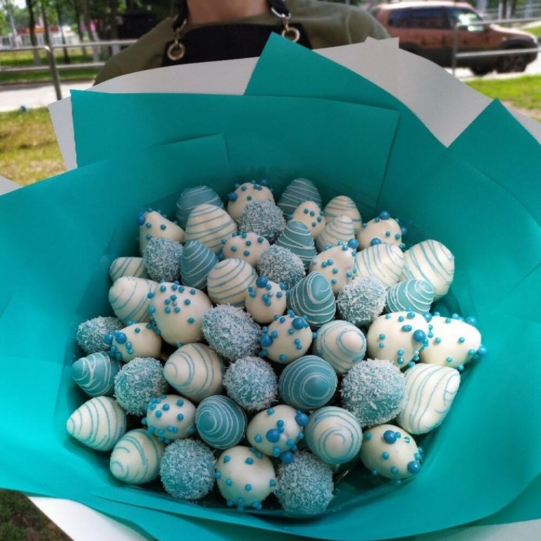 Состав: клубника в шоколаде, кейк-попсы. На фото вес букета кг. Количество клубники зависит от ее размера.