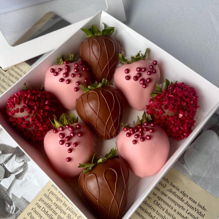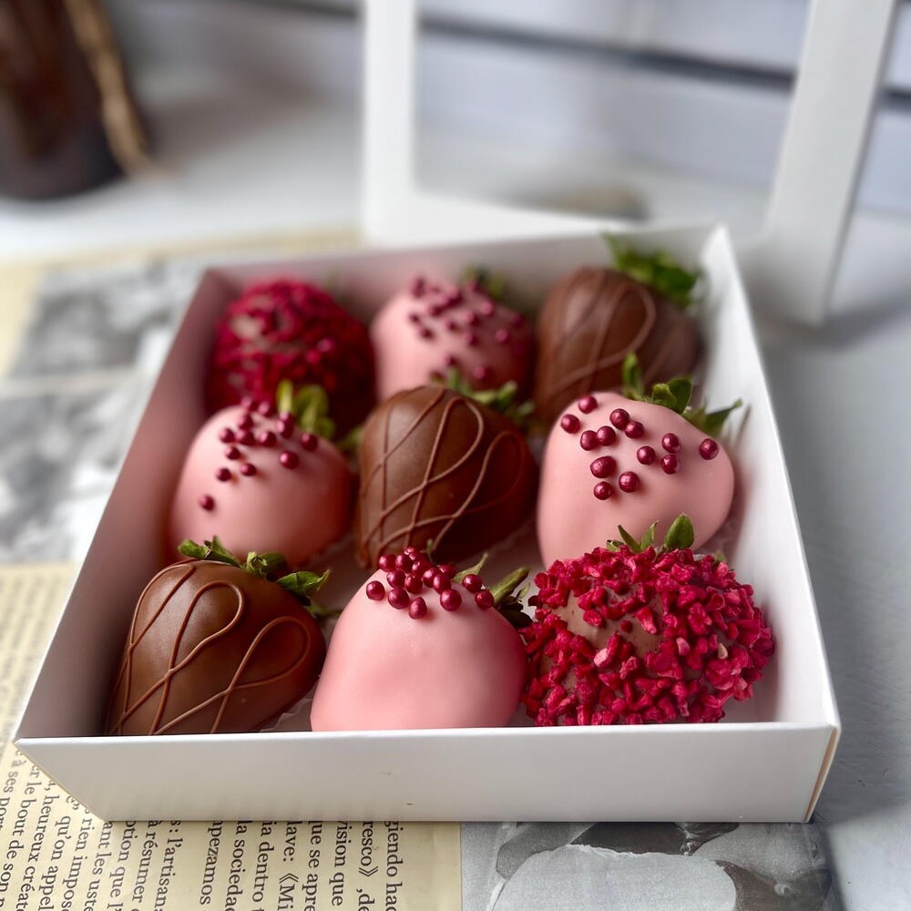 Клубника в шоколаде 9 шт. (посыпки: шарики и сублимированная ягода).